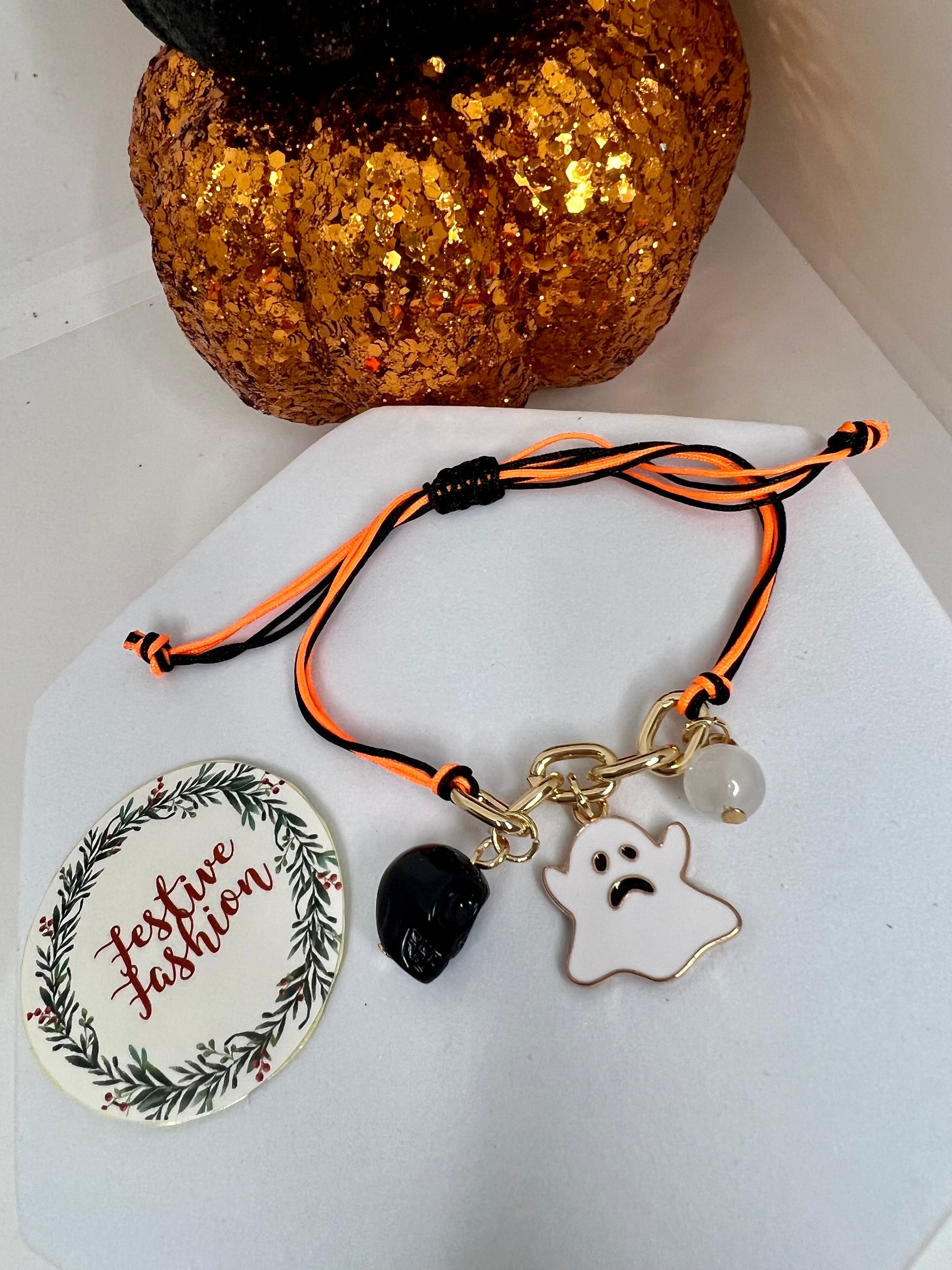 Get into the Halloween spirit with this festive Orange & Black Charm Bracelet! Featuring cute Halloween-themed charms on a vibrant orange and black cord, it’s perfect for layering or sharing with a friend. Adjustable for a comfy fit, this bracelet adds a spooky-sweet touch to any outfit — ideal for parties, trick-or-treating, or gifting to your favourite little ghoul!