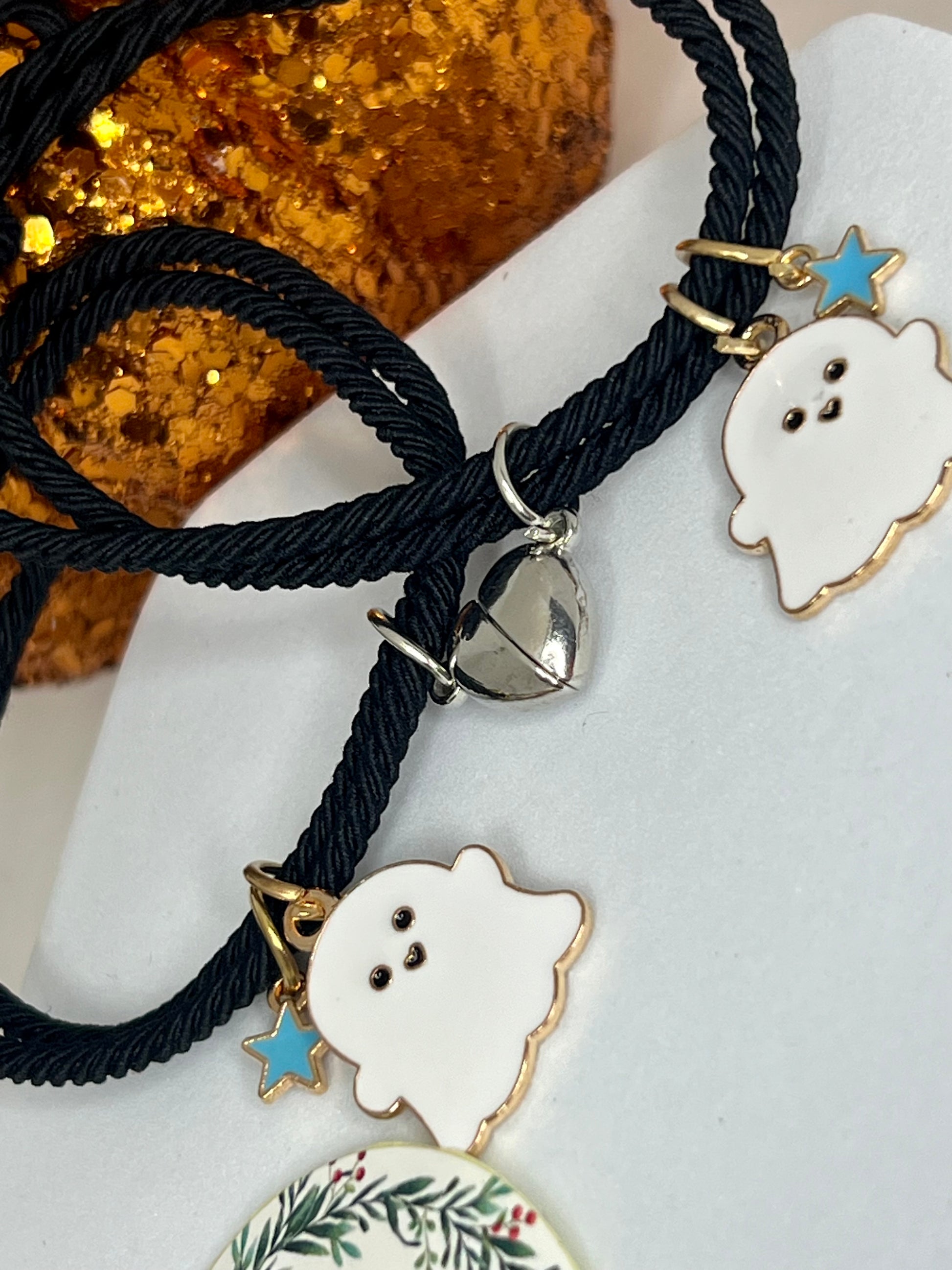 Keep the spooky spirit alive with this set of 2 cord friendship bracelets, each featuring a cute little ghost charm! Perfect for sharing with your bestie, these bracelets are adjustable for a comfortable fit and add a touch of Halloween fun to any outfit. A sweet and spooky way to celebrate friendship this season! 🎃👯♀️