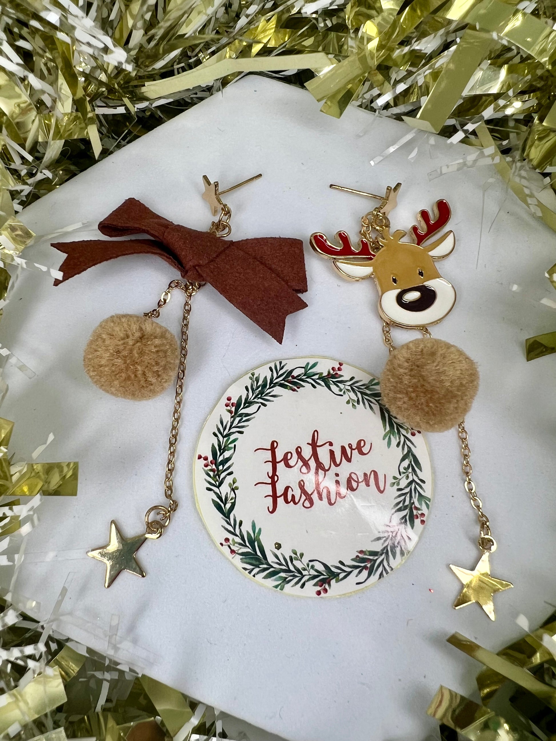 Cute, cosy, and full of Christmas charm — our brown reindeer pom pom earrings are the ultimate festive accessory. With soft fluffy pom poms and adorable reindeer details, they’ll add a touch of whimsy to any winter outfit.